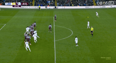 第8分钟,门前乱战,皮球打在恩梅加身上入网,利兹联1-0维拉