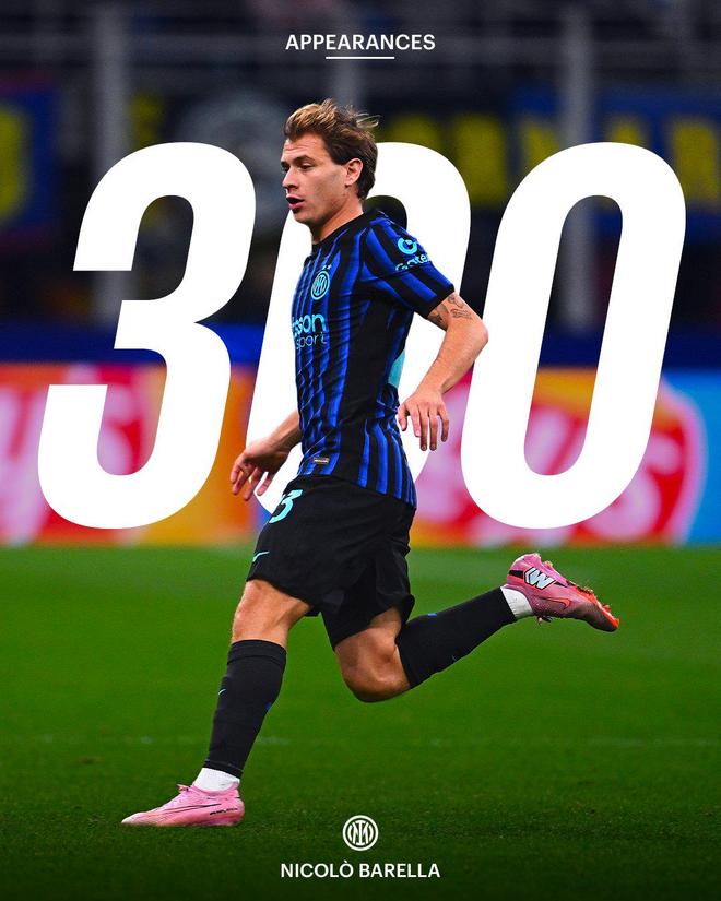同时,这也是巴雷拉国米生涯的第300场比赛。自2019年加盟国米以来,巴雷拉已代表球队效力7个赛季,期间随队夺得了2次意甲冠军、2次意大利冠军以及3次意大利超级杯冠军,同时他个人也两度获得意甲年度最佳中场 。